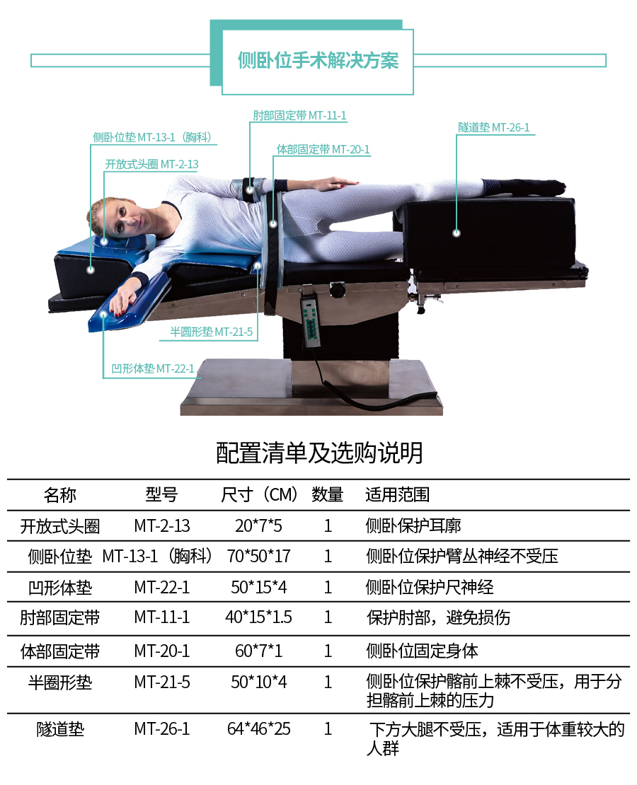 5為加強舒適性,建議在側臥位及俯臥位手術時,在體位墊上平鋪一層手術單巾